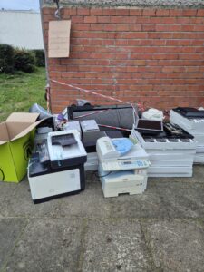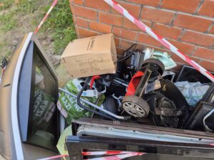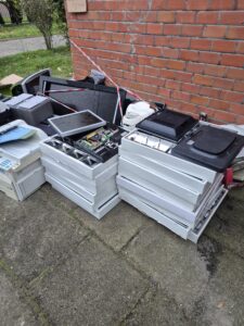 Dziękujemy wszystkim osobom zaangażowanym w zbiórkę – tym razem ilość elektrośmieci była naprawdę imponująca! Pracownicy firmy odbierającej odpady ułożyli z nich aż trzy wysokie wieże (dla porównania: w poprzednich latach powstawała tylko jedna lub dwie). Wśród oddanych sprzętów znalazły się m.in. kasy fiskalne, komputery, telefony, frytkownice, ekspresy do kawy, stare telewizory, drukarki, mikrofalówki i wiele innych urządzeń.