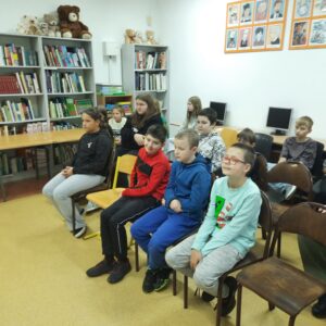 14 listopada obchodziliśmy Ogólnopolski Dzień Biblioterapii. W bibliotece budynku B uczniowie klas: 6 d, 6 a i 5 d wzięli udział w zajęciach z elementami biblioterapii. Na zakończenie spotkania uczestnicy otrzymali małe upominki.